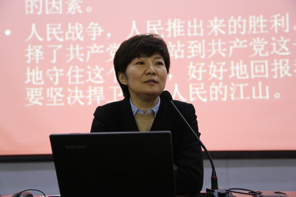 讲座一开始,贾局长用了很多生动鲜活的史实和采访视频,引领与会同志回顾了一场轰轰烈烈的大决战。她表示,淮海战役是一场以少胜多的战役,展现出我党我军优良的战略战术素养,体现了广大指战员团结协作、不怕牺牲、英勇战斗的精神;淮海战役是一场人民战争的典范,战役中543万父老乡亲倾尽全力支援前线,毛主席亲笔题词称赞是“人民的胜利”。