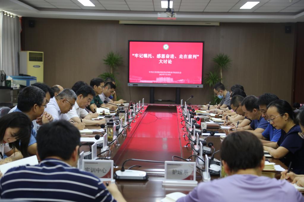 为深入推进学习贯彻习近平新时代中国特色社会主义思想主题教育,根据省局主题教育总体部署和学校主题教育工作安排,7月19日上午,校党委组织开展“牢记嘱托、感恩奋进、走在前列”大讨论。党委书记高侠主持会议并讲话,党委班子成员、各党支部书记、各部门负责人参加大讨论。