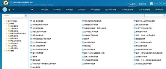 各部门所属的办事流程、申请单都在“工作申请”中, 点击在“工作申请”栏后的“更多”可看到: