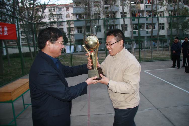 11月3日下午课外活动时间,在一场明星联队和体育教师联队的表演赛之后,我们举行了闭幕式暨颁奖仪式,校领导出席了闭幕式,并为各获奖队伍颁奖。