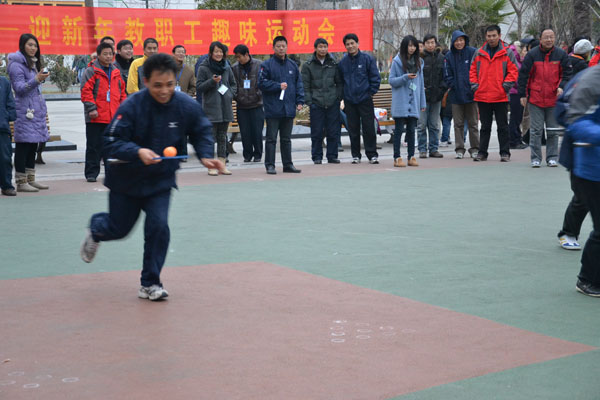 一声声鼓劲的口号,一阵阵爽朗的笑声,这一切都来自于12月23日下午课外活动时间在我校篮球场举行“我运动,我快乐——迎新年教职工趣味运动会”,参赛选手和观众都乐翻了天,比赛现场成了一片欢乐的海洋。