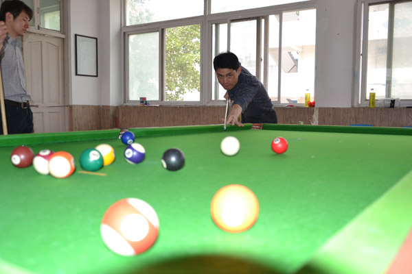 本次赛事共设有“台球”、“桌上冰壶”、“白驹过隙”、“一网打进”4个趣味项目,激起了教职工浓厚的兴趣。大家以极大的热情投入到比赛当中,“你争我夺”,好不热闹。赛场上有因为选手表现出精湛技艺的叫好声,也有因为选手出现失误的叹息声,更有因为比赛的趣味性和偶然性而洋溢的欢笑声,工会活动室瞬间成了欢乐的海洋。