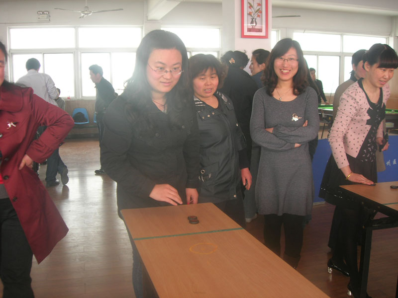 | | 校工会2012年度“桌面趣味运动会”正在如火如荼地紧张进行中,自活动开展以来,药学技术系工会小组的老师积极响应,在校领导和系部领导的带领下,工作之余热情参加到工会组织的台球、水中捞月、桌上冰壶、跳棋、五子棋等各项比赛中。