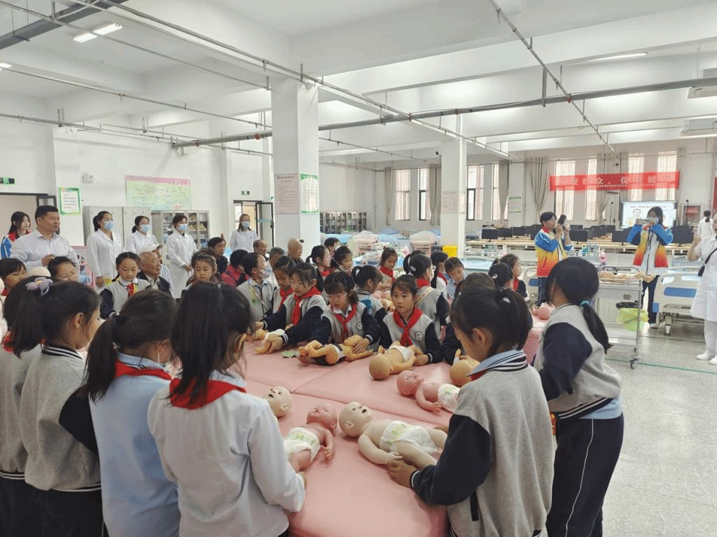 为了推进健康中国建设,围绕“深入开展全民健身和爱国卫生运动,加快现代化教育强省建设和健康江苏建设”的总要求,结合我校护理系医护类专业学科特点和专长,2023年5月12日,江苏省徐州医药高等职业学校护理系党支部面向翟山街道铜文社区党支部所属辖区居民开展“1+1”党支部结对共建志愿服务活动。邀请铜文社区居民及小学生到我校健康护理养生职业体验中心学习“人生初见,你好宝贝”为主题的健康指导。刘珂妍等教师通过课件、模型、实操演练及生动讲解,居民和同学们认真听讲,仔细观察,踊跃尝试,反应热烈。