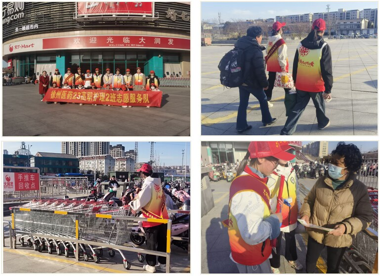 2024年3月9日,班级志愿者积极走出校门前往欣欣路大润发超市开展志愿服务活动。他们充分发挥所学专业优势为市民展开健康知识宣教;为方便顾客使用,将杂乱的超市购物推车排列整齐;看到提重物的老年人主动上前协助,并搀扶他们过马路......他们热情大方,主动服务,赢得了市民的点赞和好评。