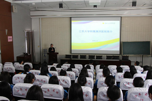 护理系杜培培主任向参会的澳洋医院各位领导介绍了澳洋班的基本情况:澳洋班共52名同学,女生50人,男生2人;班级学习氛围浓厚,积极参与学校组织的各项活动,多次获得校系表彰,是一个积极向上、具有凝聚力的班集体。