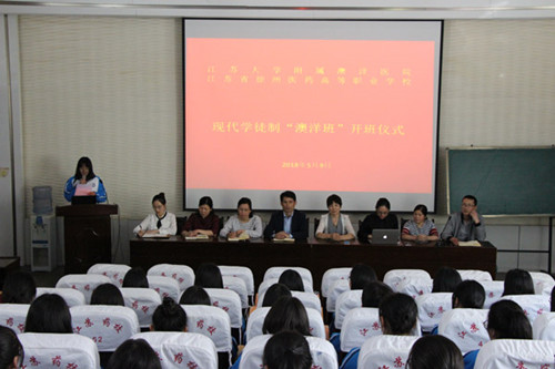 5月9日上午,护理系首届现代学徒制澳洋班开班典礼在阶梯三举行。江苏大学附属张家港澳洋医院董海灵院长、人力资源部张丽主任、护理部李广琴主任,学校副校长佟光进,学工处处长张华,护理系副主任杜培培、姜秀英,澳洋班班主任汤敏以及澳