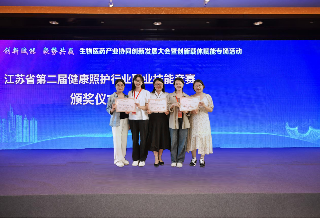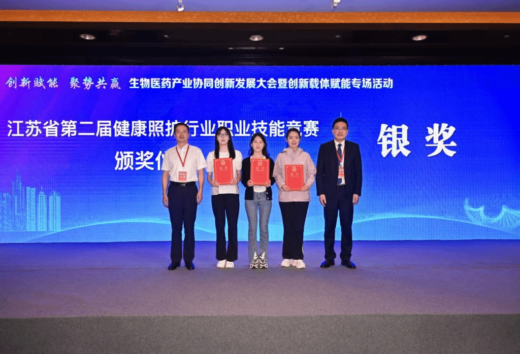 江苏省第二届健康照护行业职业技能大赛于8月29日至31日在南京举办,本次大赛由江苏省研究型医院学会、江苏省人力资源和社会保障厅、江苏省总工会、共青团江苏省委等多部门联合举办,全省共62家医院、20家康养机构、18所本科、高职、中职院校的200名选手参赛。在9月27日举行的颁奖仪式上,我校护理系2022级高职护理班厉蔓仪、魏思涵同学分别获得银奖和铜奖,我校荣获团体铜奖。