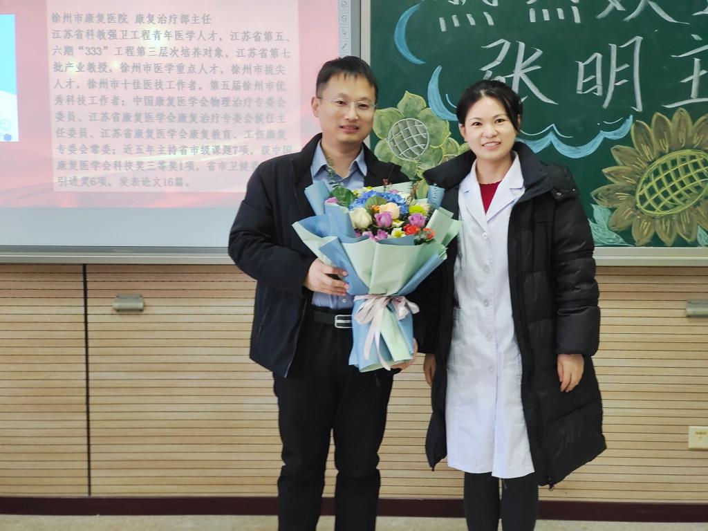 张明主任于今年6月受聘为我校院级康复治疗技术专业产业教授。张主任系徐州市康复医院康复治疗部主任,主任技师,副教授,硕士生导师,江苏省科教强卫工程青年医学人才,江苏省第五、六期“333”工程第三层次培养对象,江苏省第七批产业教授,徐州市医学重点人才,徐州市拔尖人才,徐州市十佳医技工作者,第五届徐州市优秀科技工作者;中国康复医学会物理治疗专委会委员,江苏省康复医学会康复治疗专委会候任主任委员,江苏省康复医学会康复教育、工伤康复专委会常委;近五年主持省市级课题7项,获中国康复医学会科技奖三等奖1项,省市卫健委新技术引进奖6项,发表论文16篇。