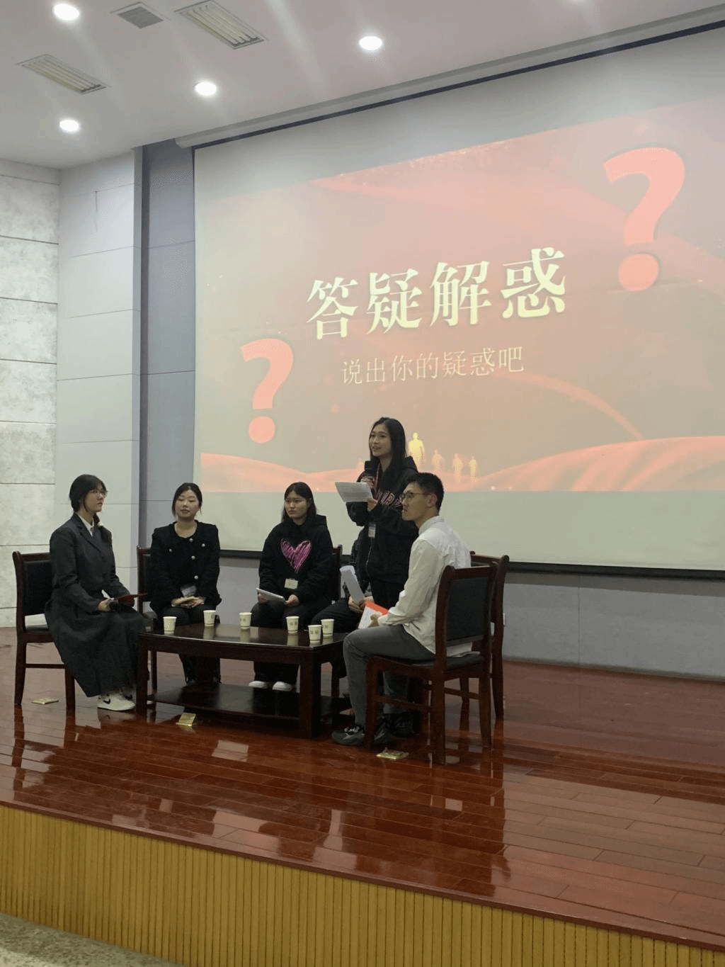 本次活动分为两个环节:学长分享实习经验、现场提问。在活动过程中,各位学长分别就实习期间可能发生的问题和要注意的细节点,以及将来就业要面临的各种疑难作出解答,分享自己实习期间所发生的种种趣事,并且针对同学们现场提出的问题提出了自己的宝贵意见。针对未来就业问题,刘纪副主任给大家讲了很多就业渠道和面试技巧让同学们受益匪浅。