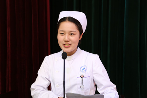 会上,2015级学生代表许沁怡发表了感言。(护理系)
