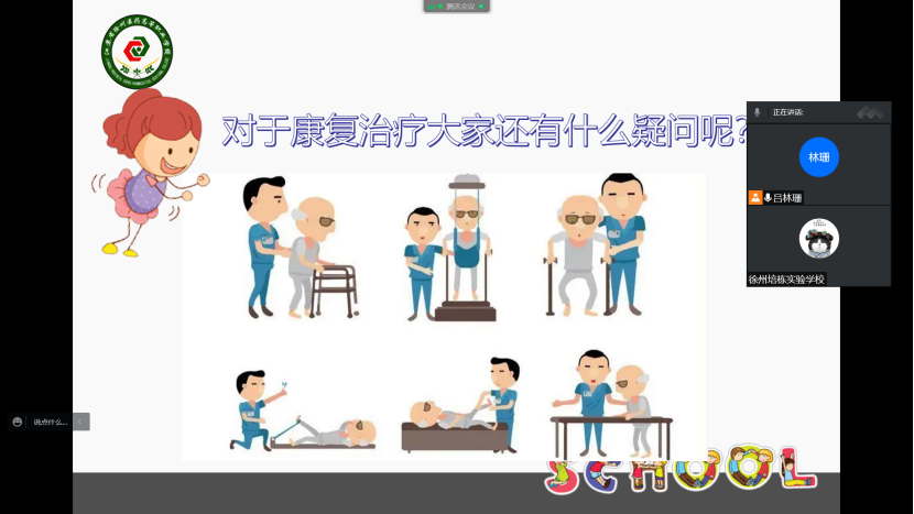 2022年5月25日下午,江苏师范大学培栋实验学校的师生代表通过腾讯会议在线的形式体验我校健康护理养生体验中心-走进康复治疗技术。在吕林珊老师绘声绘色地生动讲解下,同学们积极参与体验活动。