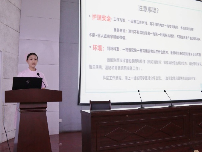 为指导学生规划自己的职业方向,活动还邀请了在徐州医科大学附属医院就业的我校优秀毕业生张梓妙同学就实习期间如何保质保量完成实习任务、医院招聘流程和应聘注意事项为主题与实习学生进行沟通交流,同学们认真记录、入耳入心。