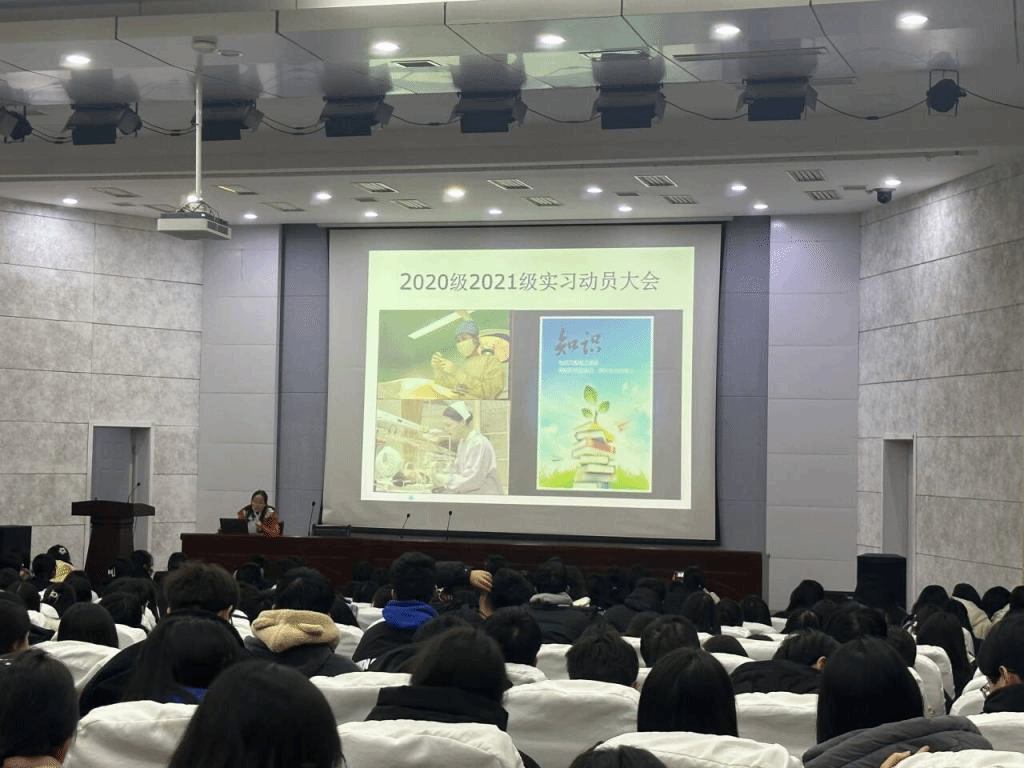 为进一步加强护理专业实习生规范管理,帮助同学们树立正确的实习观念,引导做好实习前的各项准备,明确实习要求,缓解同学们实习前的紧张、焦虑情绪,于2024年1月8日下午16:00,在我校护理系报告厅召开20高职护理、助产及21中专护理专业实习动员大会。本次大会由护理系杜培培主任、护理系徐咏梅副主任主讲以及九个班主任和即将踏上实习岗位的同学共同参加。