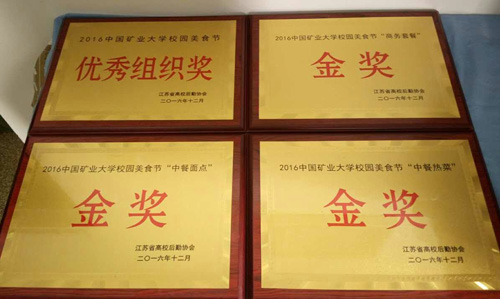 为进一步加强高校厨师技能交流和相互学习,丰富高校食堂伙食品种,提高我校饮食管理水平,我校饮食服务中心于12月17日参加了由江苏省高校后勤协会组织的“2016中国矿业大学美食节”活动。在学校领导的指导下,在总务处孙曰早、王穆光两位处长带领下,餐饮中心精心准备,由贾中良、仲鹏、王由光、刘立祥、王振、胡欢情、王瑞培组成的团队带着4个面点、16个糕点、4个套餐积极参赛,最终获得江苏省高校后勤协会颁发的“优秀组织奖”和“中餐热菜”、“中餐面点”、“商务套餐”三项金奖。 (总务处)
