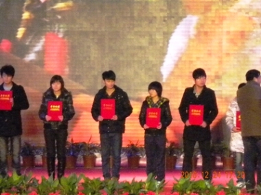 11月初,自接到团市委关于举办第三届校园文化艺术节各项活动通知以后,校领导高度重视,学工处、校团委认真选派优秀节目和学生参加了校园主持人大赛、校园十佳歌手大赛、社团文化风采博客大赛等各项竞赛。在各项赛事中,我校学生不畏强手,发挥最佳水平,获得了不凡的成绩。其中08高剂班王燕同学进入了校园主持人大赛的复赛,08高分班徐颖、08高学班张猛同学进入了校园十佳歌手的复赛,09中澳班吕鑫靖同学进入了校园十佳歌手的24强总决赛,药学技术系本草协会也获得十佳社团的称号。