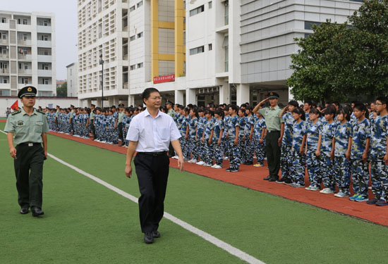 阅兵仪式上,王吉东校长在承训部队指导员陪同下向2013级参训同学问好。