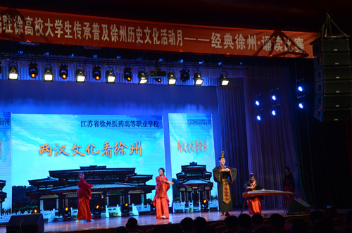 此次主题诵读比赛为第五届驻徐高校大学生徐州历史文化传承普及活动月中的第一项子活动,学校领导高度重视,在校团委精心组织下,各系部认真筹备,经过校内选拔,最终由制药工程系队伍代表我校参赛。在指导老师杨雷老师的严格细致的指导下,选手们积极准备,刻苦练习,力争比赛的最佳效果。比赛当晚,我校选手们精神高亢饱满、举止从容端庄、吐字清晰准确、感情真挚充沛,在现场观众中产生了强烈的情感共鸣。在与矿大、师大等14所高校的激烈竞争中,最终荣获第六名优异成绩,这也是我校参与徐州市汉文化诵读比赛史上的最好成绩。