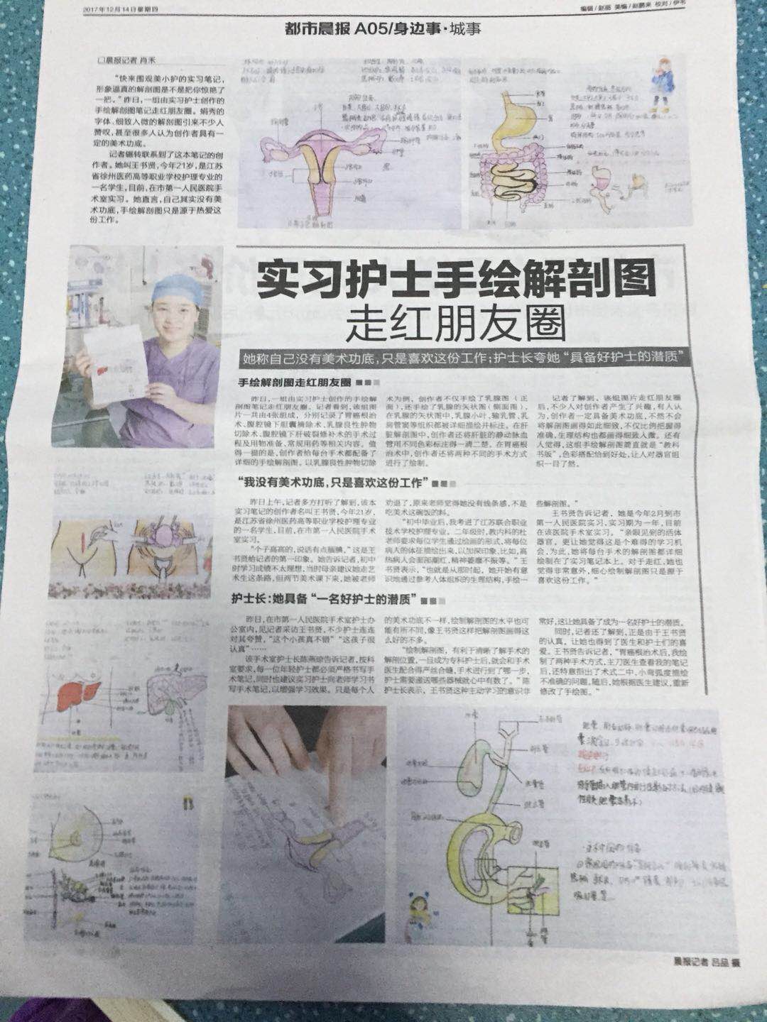 21岁的王书贤同学,是我校2013级护理专业学生,目前在徐州市第一人民医院手术室实习。近日,她的手绘解剖图在朋友圈中走红,同时她的事迹得到了都市晨报等多个媒体的报道。