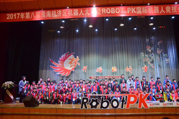 近日,由市教育局、共青团徐州市委、市科协、市少工委联合主办的2017第八届淮海经济区机器人大赛暨ROBOT PK 国际机器人竞技公开赛(徐州赛区)大赛在我校隆重举行。团市委书记潘晓、教育局副局长刘艳、徐州市科协宣教部部长黄娟、徐州市青少宫党总支书记于桂芬、我校党委书记高侠、副校长佟光进等领导出席了大赛颁奖仪式。高侠书记代表学校致辞。