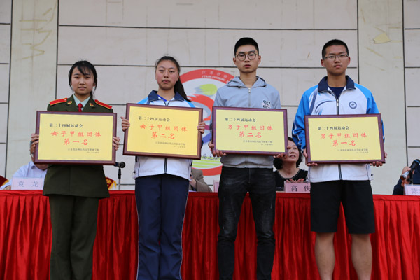 4月26-27日,我校成功举行第24届运动会,共有1350名运动员参赛,参赛人数为历届之最,两天内共决出了70个冠军。