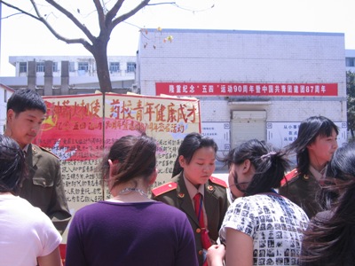 5月4日中午,由校团委举办的以“纪念五四运动90周年暨建团87周年”为主题的签名活动在校园内举行。