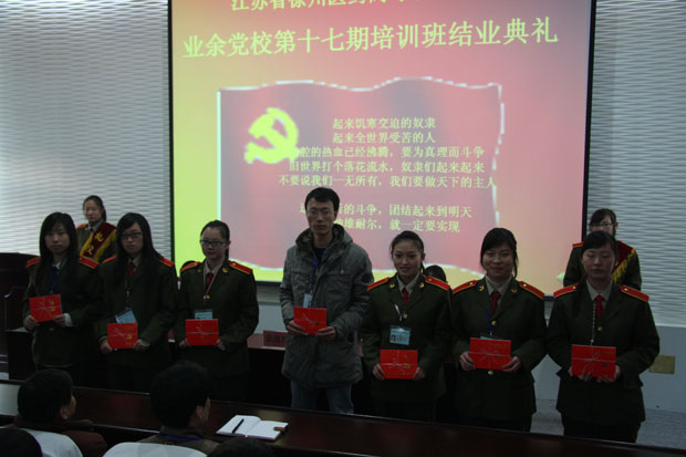 本期业余党校培训班共有77名学员圆满完成了学习任务按时结业。在培训中,学员们了解了党的基本理论知识,重点学习了党的十七大精神和科学发展观深刻内涵,编写了以文明礼仪、安全知识为主题的小报。特别是结合学校近期开展的消防安全活动,我们组织全体学员对校园消防器材进行了大清扫,这项实践活动赢得了师生的一致好评。通过学习和实践,学员们的思想觉悟和政治理论水平都有了明显提高,端正了入党动机,加深了对党的认识,达到了开办业余党校培训班的目的。