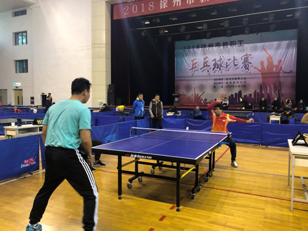 为了深入贯彻实施《全民健身计划纲要》,展现教师健康向上的精神风貌,搭建教工张扬活力、绽放激情的舞台, 推动校际间的沟通和交流,市教育工会于11月10日在徐州医科大学文体活动中心举行了2018年徐州市教职工乒乓球比赛。来自全市教育系统的27支代表队参加了比赛。