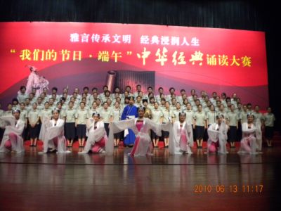为大力弘扬中华民族优秀传统文化和民族优良传统,推进社会主义核心价值体系建设,展示当代青少年积极向上的精神风貌,推进青少年思想道德建设的深入发展,徐州市文明办、市教育局于6月13日在新城区行政区大礼堂,隆重举行了徐州市“我们的节日-端午”中华经典诵读大赛活动。