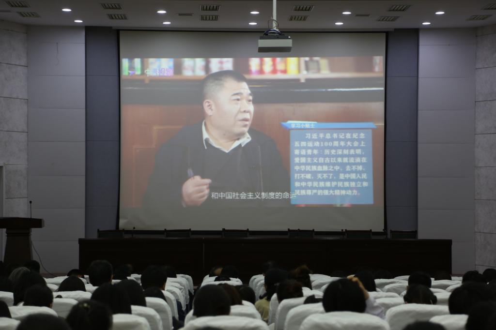 会上,校党委优选了中青网《今天的青年,到底该传承怎样的五四精神?》的教育视频。视频以党史专家王均伟、第23届中国青年五四奖章获得者王中美和郭旭光、青年演员邢菲的座谈形式,明晰了五四精神“爱国、进步、民主、科学”内涵,由两位第23届中国青年五四奖章获得者亲身工作的感受体悟,阐明了今天的青年,到底该传承怎样的五四精神。简短的辅导视频主题清晰、启迪思想、发人深省,与会教师产生了强烈的思想和认识共鸣。