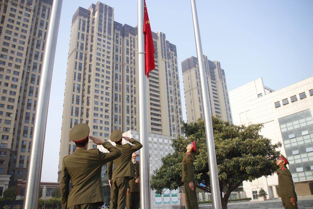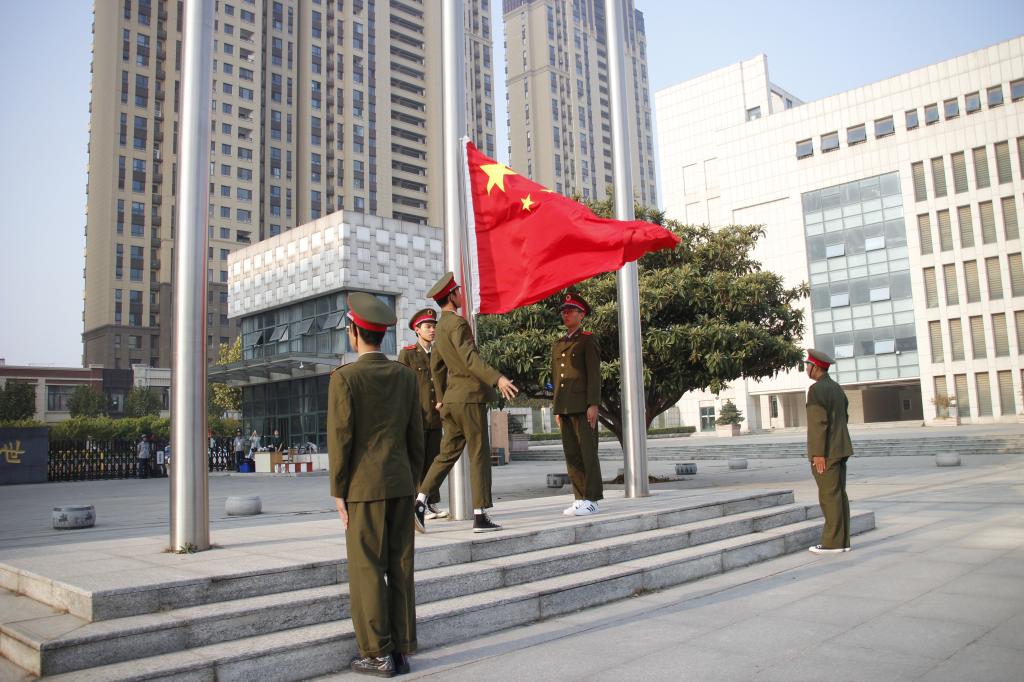 仪式最后,学工处副处长李智作本次升旗仪式总结发言,他说,如今的美好生活是曾经多少爱国将领、仁人志士抛头颅洒热血换来的,我们应当牢记历史,不辱使命,为实现“两个一百年”奋斗目标、实现中华民族伟大复兴的中国梦不懈奋斗。唯有扎根中国大地,抓住每一个今天,才能创造美好未来。唯有发扬斗争精神,练就斗争本领,保持艰苦奋斗、顽强奋斗、永远奋斗的精气神,才能披荆斩棘、乘风破浪。让我们以梦想为岸、以团结作帆、以奋斗划桨,在浩荡的时代东风中,向着光辉的未来启航。