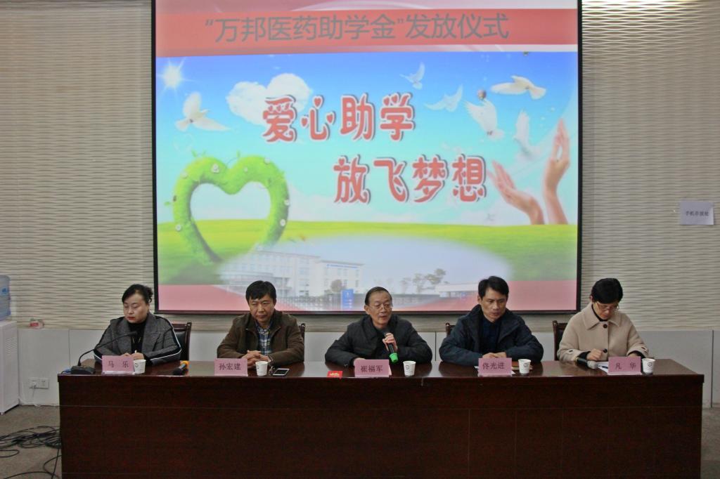 “万邦医药助学金”是江苏万邦生化医药集团有限责任公司在我校设立的爱心助学项目,用于帮助我校贫困新生圆梦求学之路,为社会培养更多优秀医药卫生人才。作为国家两化融合贯标示范企业、省高新技术企业、省创新型企业,万邦生化医药集团有限责任公司在企业多元业务持续飞速发展的同时,积极履行社会责任,体现了企业应有的社会担当。期待受助学子能够心怀感恩,早日成为社会栋梁之才,为健康事业作出自己应有的贡献。
