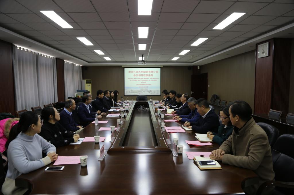 11月28日,礼来苏州制药有限公司与我校校企合作交流会在学校第一会议室隆重举行。礼来苏州制药有限公司总经理ROBERTO、人力资源总监Dirk、技术服务总监尹放东、运营副总监钱怀骏等一行10位嘉宾与崔福军校长、袁龙副校长、佟光进副校长等学校代表共同出席交流。学校办公室、教务处、科研处、学工处、实训中心、药学系、制药系等部门领导共同参加了会议。
