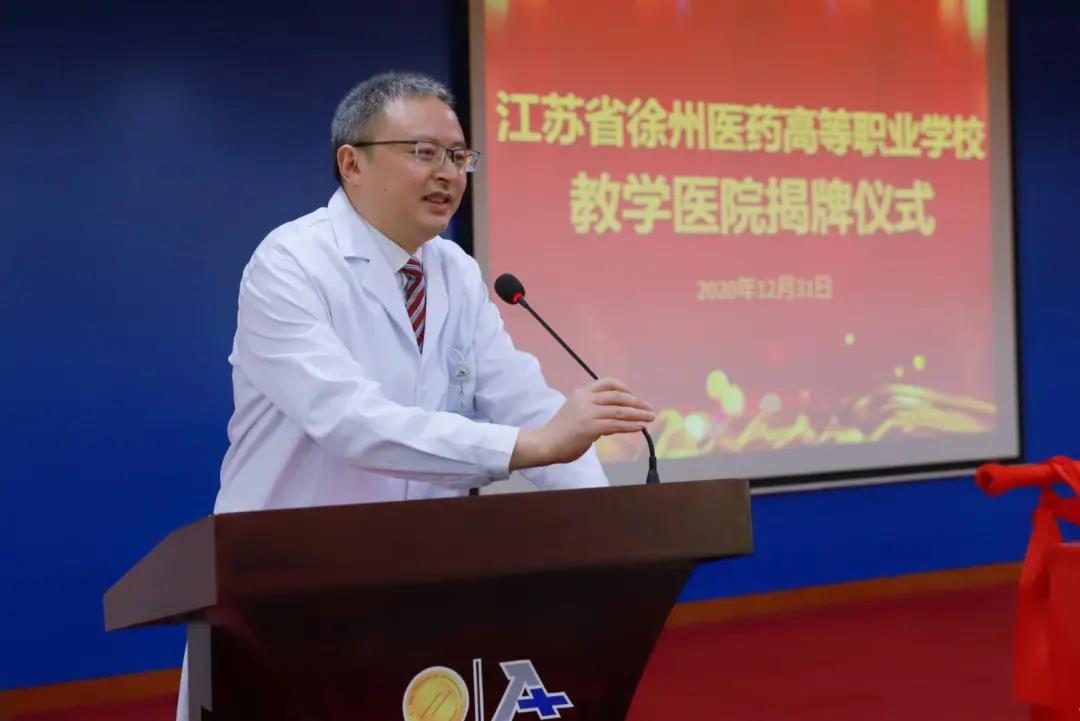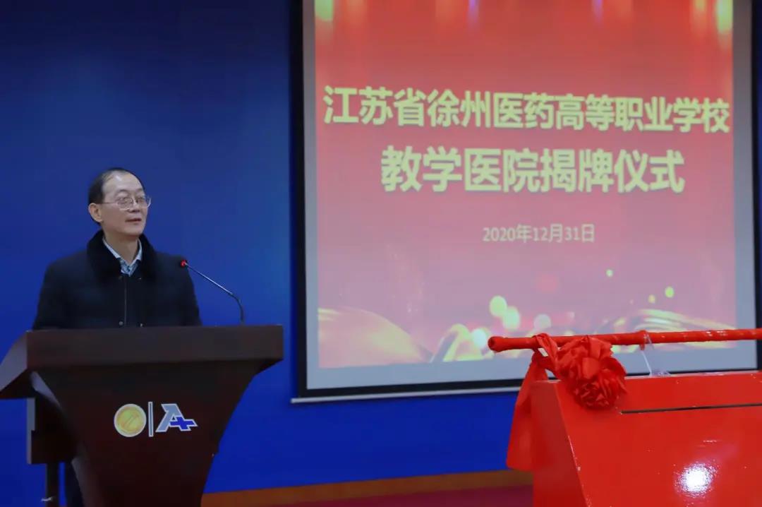 励建安院士、高家彦院长、崔福军校长、蒋达兴执行院长及多位领导,为“江苏省徐州医药高等职业学校教学医院实习就业基地”进行揭牌。