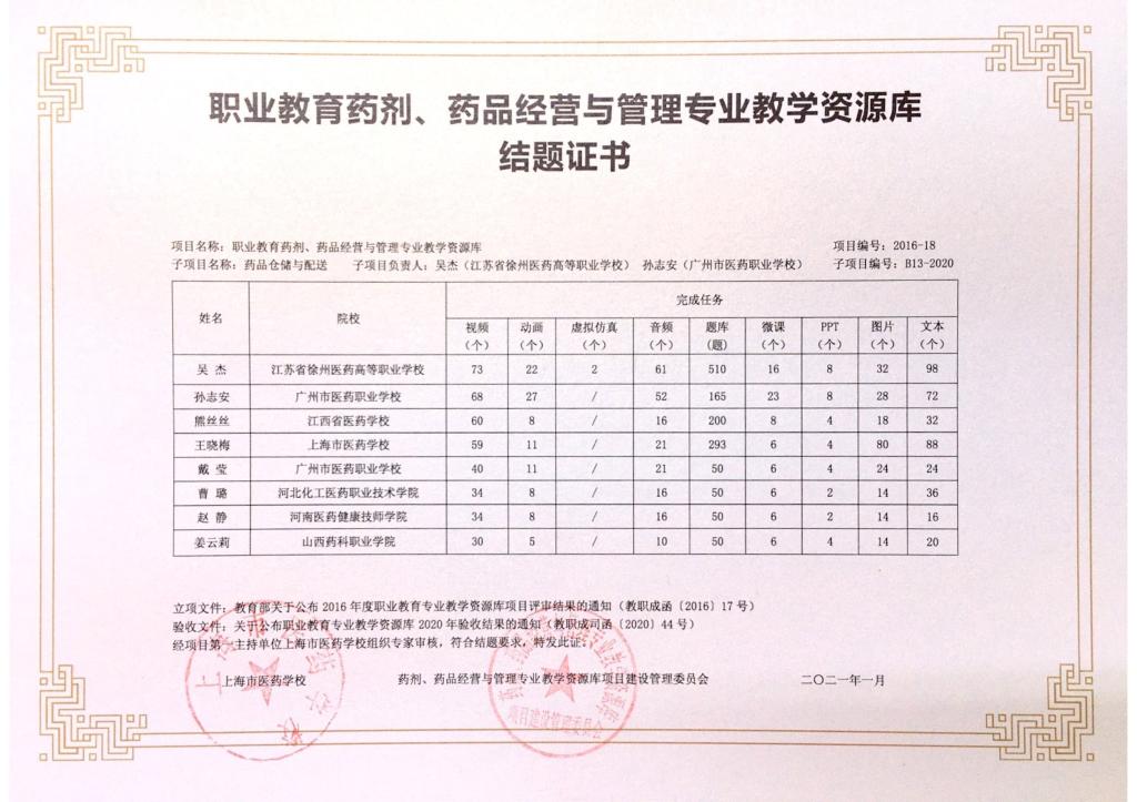 药剂、药品经营与管理专业教学资源库项目2016年12月经教育部批准立项,联合了全国17家医药类知名职业院校、19家医药企业、3家行业协会和1家资源平台单位参与。我校作为联盟院校主要成员由药学技术系负责子项目《药品仓储与配送》课程的建设以及资源库配套的行业企业资源建设。项目通过构建线上线下融合的中高职贯通的药剂、药品经营与管理专业人才在线学习平台,实现学生、企业、社会人员随时随地学习,充电提升,助力“健康中国”战略。