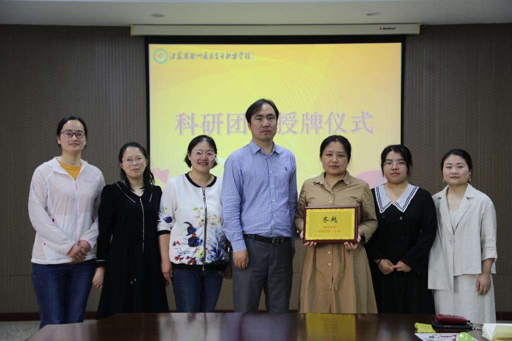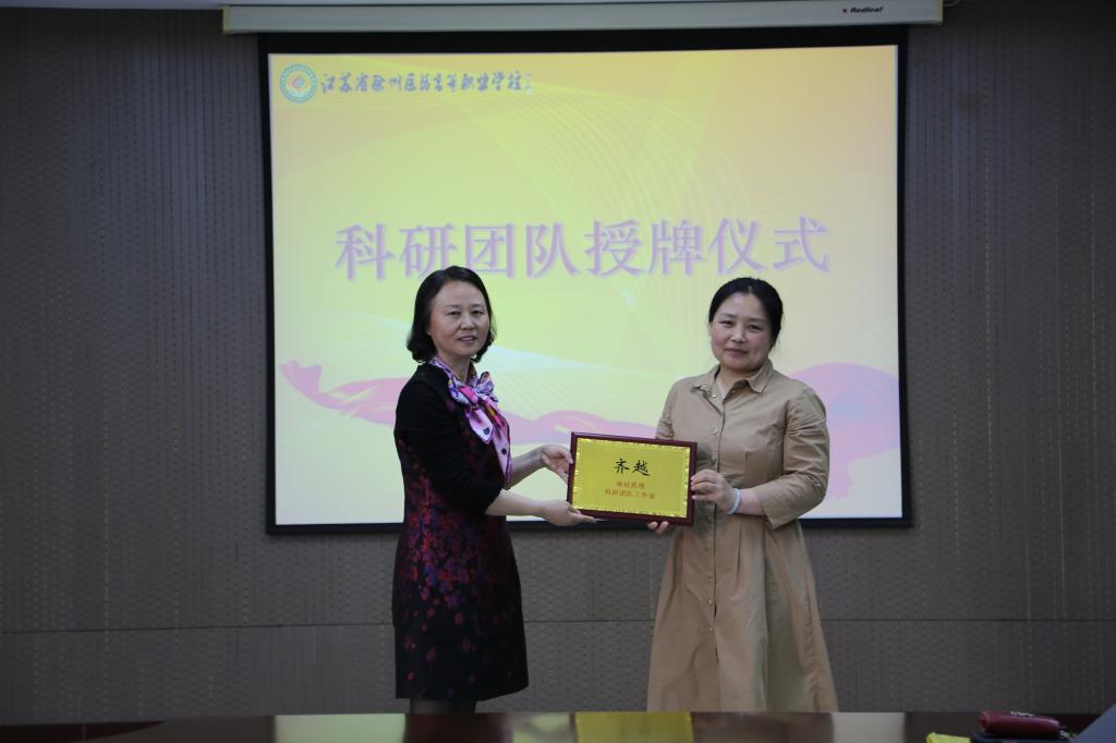 为落实人才强校战略,充分发挥学校高层次人才的引领作用,提高教师科研水平和能力,促进专业建设,依照《江苏省徐州医药高等职业学校科研团队建设管理办法》规定的程序,经团队带头人申请,所在系部择优推荐,人事处组织评审,校长办公会审定,学校批准成立齐越“神经药理”、“天然药物活性组分”单舒筠科研团队,并于近日举行了授牌仪式。校党委书记高侠,副校长袁龙出席仪式并为团队授牌,相关部门负责人、科研团队带头人及团队成员参加了仪式。