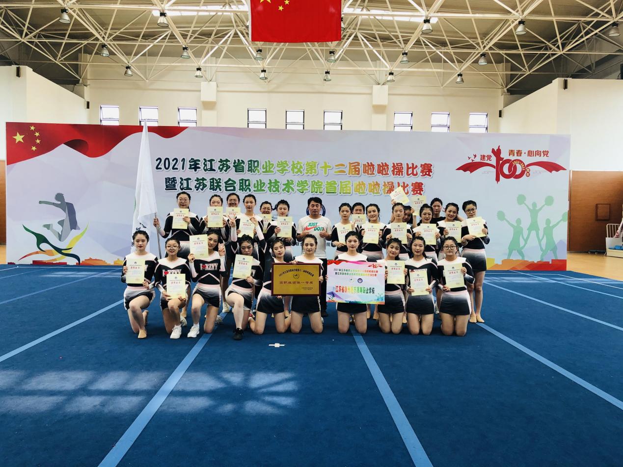 本次比赛以“青春心向党”,庆祝中国共产党成立100周年为主题,由江苏省学生体育协会、江苏联合职业技术学院主办,江苏省学生体育协会职业学校工作委员会、江苏省学生体育协会职业学校工作委员会健美操分会、江苏联合职业技术学院无锡交通分院、江苏联合职业技术学院无锡机电分院共同承办,是学院开展党史学习教育、庆祝中国共产党成立100周年系列活动之一。共有来自全省的43支参赛队伍、1000余名运动员、领队和教练员参与2个组别、6个单项的角逐。比赛中,我校25名运动员们配合默契,在赛场上将每个节拍化作生命的律动,尽情绽放着青春的活力,以团结自信的动作表现、优雅大方的精神风貌征服了评委和观众,最终获得江苏省职业学校第十二届啦啦操比赛高职组团体一等奖、江苏联合职业技术学院首届啦啦操比赛团体一等奖。