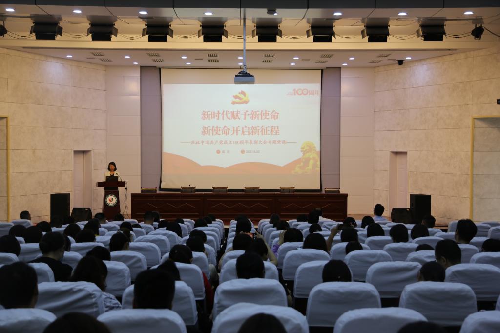 党委书记高侠代表党委班子向为学校发展事业做出贡献的老党员们致以崇高敬意,向获得表彰的先进集体和优秀个人表示热烈的祝贺,向全校广大党员致以节日的问候。她以《新时代赋予新使命新使命开启新征程》为题为全体党员开设专题党课,从“践行初心使命,一心一意跟党走”“认真学习领会全国职业教育大会精神”“绘蓝图,谱新篇,奋力开启学校发展新征程”3个方面,回顾了中国共产党的光辉历史,总结了一年来党委工作开展情况,提出了学习贯彻落实全国职业教育大会精神的“药校路径”,教育引导全体党员欲知大道,必先为史;以史为鉴,知古鉴今;知史爱党,知史爱国;培根铸魂,坚定信念。