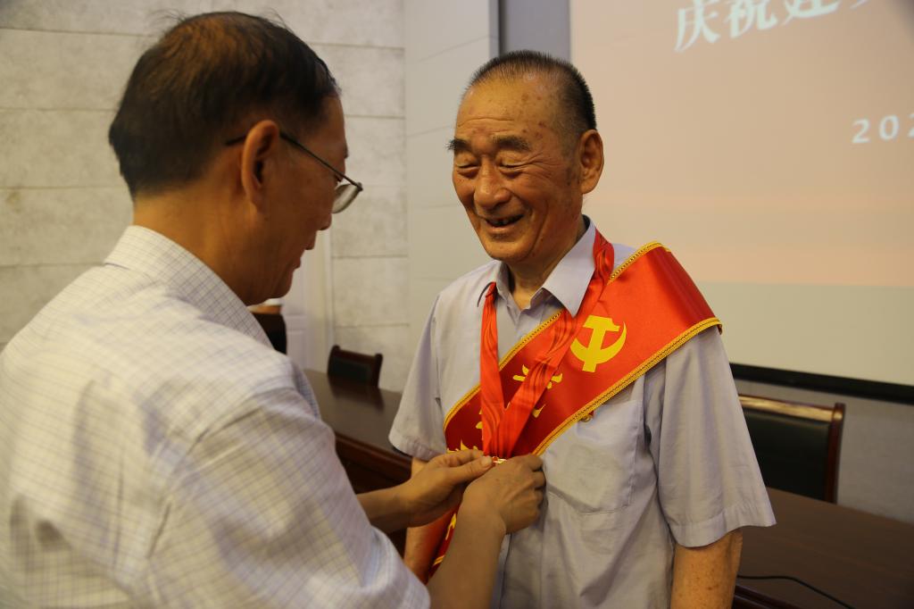 校长、党委副书记崔福军,党委书记高侠为到会的老党员代表颁发“光荣在党50年”纪念章。蔡万金同志代表老党员发言,作为学校老领导,他用自己对党的忠诚和对学校的热爱,为与会党员上了生动的一课。
