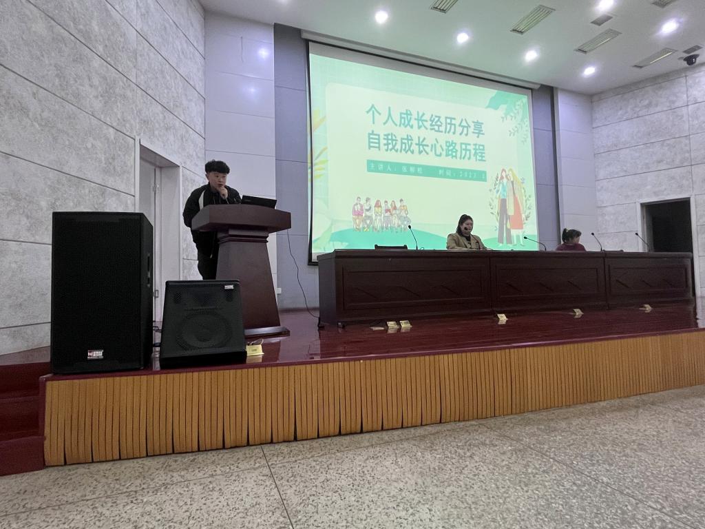 张柳松同学2016年进入我校医疗设备应用技术专业就读,在校期间表现优异,2021年成功被南通理工学院录取,本科阶段依然积极进取,2023年通过上海铁路局招聘,成为了一名国企员工。张柳松同学在交流过程中通过PPT和幽默风趣的语言生动有趣得分享了自己从创业到升学目标转换的心路历程和专转本的学习规划与学习经验。