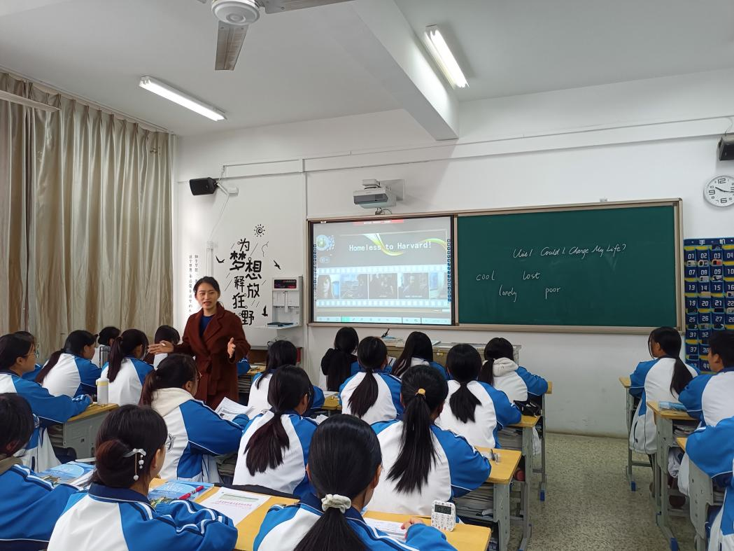 于泳潭老师在教授《Could I Change My Life?》一课时通过动态复习闯关小游戏检查学习效果,在学生完成闯关游戏时引导学生思考为什么人物不断变化地点从而导入新课;在教学过程中以学生为中心,让学生为电影配音,激发学习热情,同时锻炼学生口语表达能力。现代化教学手段,充分激发学生学习热情,有效解决了教学重难点。