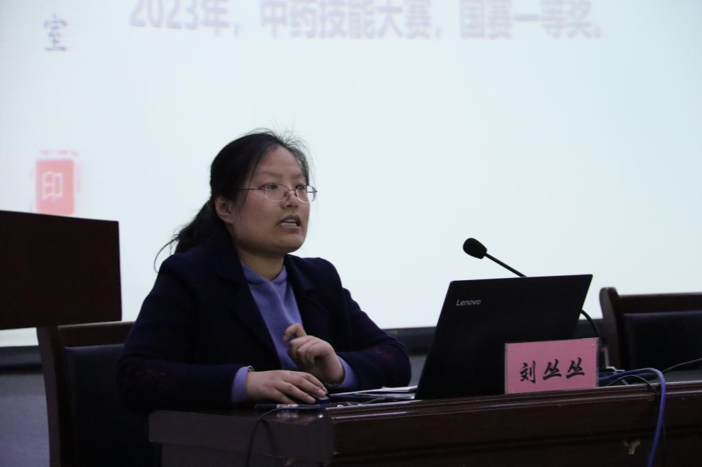18高职中药学1班梁树同学和20高职生物制药技术班佟雪晴同学作为获奖选手代表分享了她们的备赛、比赛经历;优异的成绩除了选手日复一日的刻苦努力,更是指导老师精益求精、追求卓越的精神体现,优秀指导老师刘丛丛分享了她带领选手勇夺桂冠的秘诀。