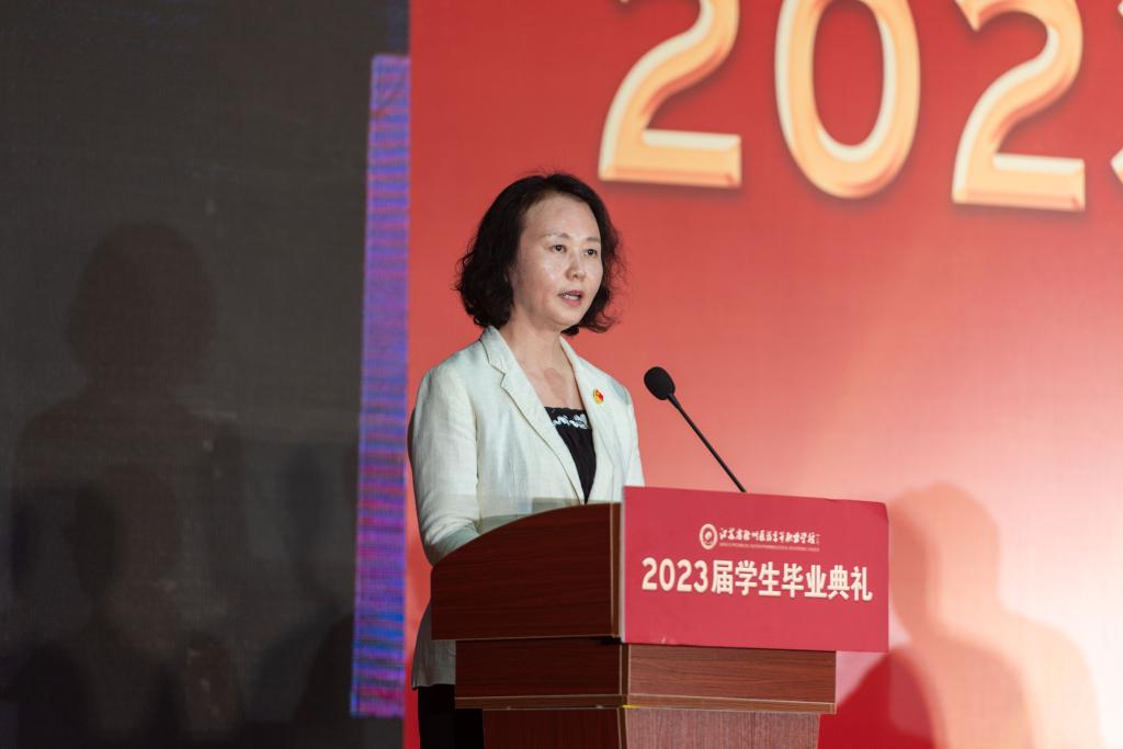 随后,由袁龙副校长宣读荣获国家奖学金、国家励志奖学金、2023年江苏省“三好学生”“优秀学生干部”、联院“优秀毕业生”学生名单并进行了颁奖;陈志东副校长宣读2023年优秀毕业生表彰决定并进行了颁奖;佟光进副校长宣读2023届毕业生校友工作联络员聘任决定并举行了校友联络员受聘仪式;校党委高侠书记宣读2023届毕业生毕业决定并为毕业生代表颁发了毕业证书。
