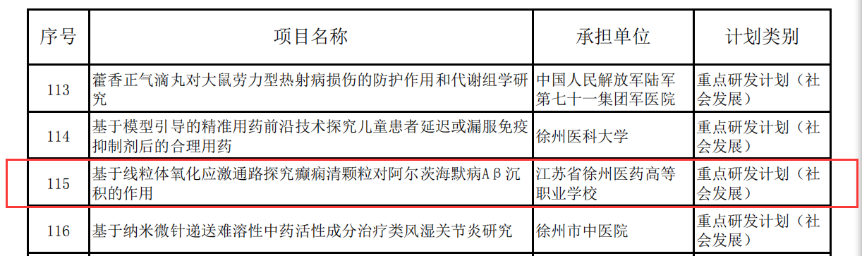 曹丹老师也在重点研发计划(社会发展面上)获得项目立项,齐越博士工作室坚定纵向深入研究目标不动摇,长期致力于阿尔茨海默病研究,本次已是该团队连续获批的第3项科技专项资金,我校自然科学研究领域呈现出了良好的发展态势,目前承担徐州市科技局项目已共计获批13项。