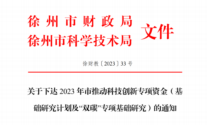 近日,徐州市科学技术局与徐州市财政局联合发布了《关于下达2023年市推动科技创新专项资金(基础研究计划及“双碳”专项基础研究)的通知》(徐财教〔2023〕33号)。我校李望老师所带领的团队申请项目获批并获市资金资助,这是我校基础研究计划项目历史上的首次获批。