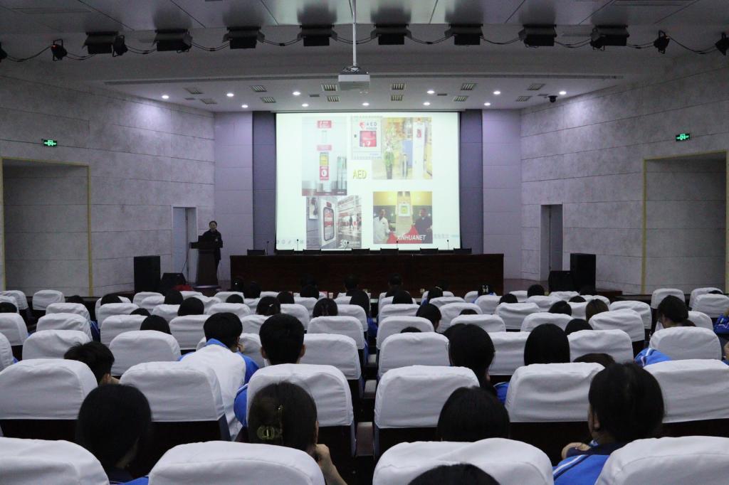 11月1日,徐州市卫健委卫生应急办公室陈巍主任、徐州市卫健委卫生应急办公室科员徐耿、徐州市急救医疗中心杨蕾蕾主任和蒋梦婷主任在护理系报告厅为全体马拉松志愿者医疗志愿者进行专项培训。培训现场,佟光进副校长对徐州马拉松工作进行了具体指示,徐州市卫健委卫生应急办公室陈巍主任重点强调了医疗志愿者现场志愿服务的注意事项,杨蕾蕾主任和蒋梦婷主任通过视频演示和现场教学,指导在场的志愿者学习心肺复苏操作步骤和AED的使用方法。