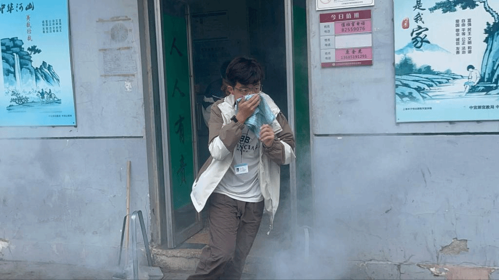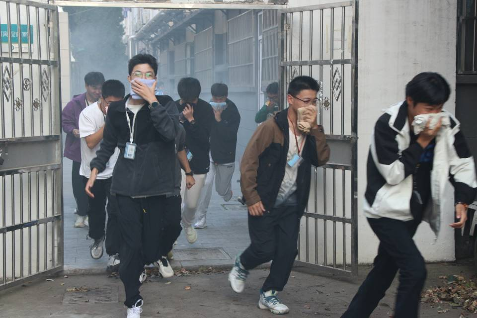 为了确保活动落到实处,学生工作处制定了周密的消防疏散演练方案,并要求班主任召开班会,向2023级新生传达安全知识以及演练注意事项。当天下午16点20分,伴随着火警铃声,紧张有序的疏散演练拉开了帷幕。只见宿舍楼门口冒出了模拟火灾现场的烟雾,现场顿时“浓烟滚滚”。宿舍生活老师迅速到岗,同学们快速拿起湿毛巾,捂住口鼻,弯下腰,按疏散路线从“火场”逃离。到达指定安全地点后,各班迅速清点人数,并及时把学生人数上报给现场总指挥。所有人员在这次疏散过程中做到了有序、迅速撤离,消防通道畅通,无一学生遗漏,无拥挤意外发生。