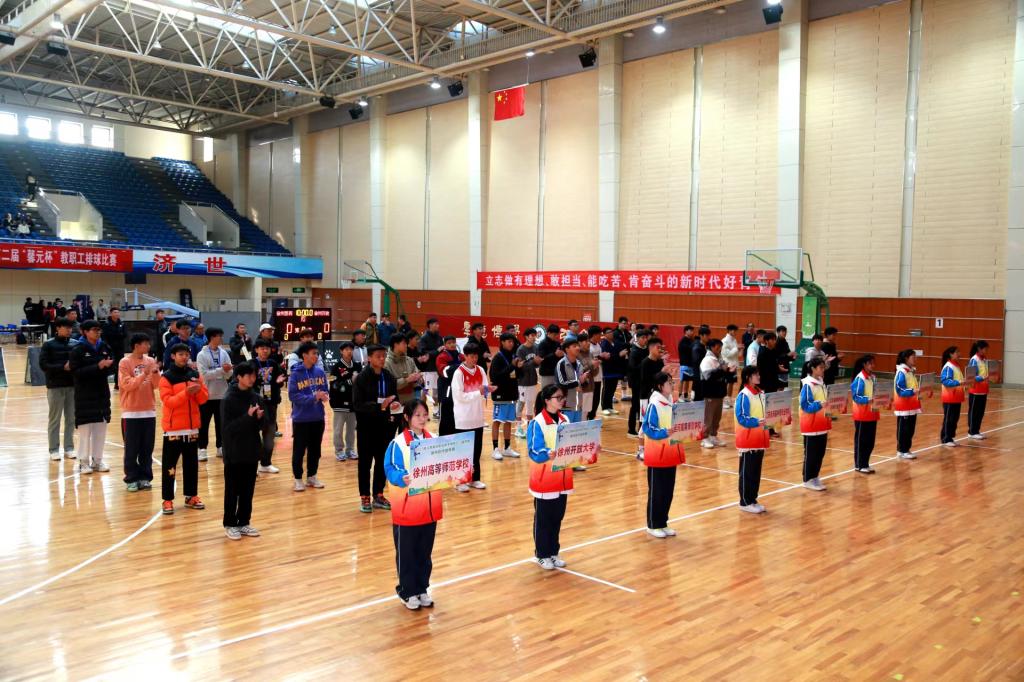 比赛开幕式由片区组秘书长、徐州医药分院佟光进副校长主持,徐州开放大学胡钊涵副校长致开幕辞,徐州经贸分院张传娟副校长为参赛队员代表授球,片区组组长、徐州医药分院校党委高侠书记宣布比赛开始。