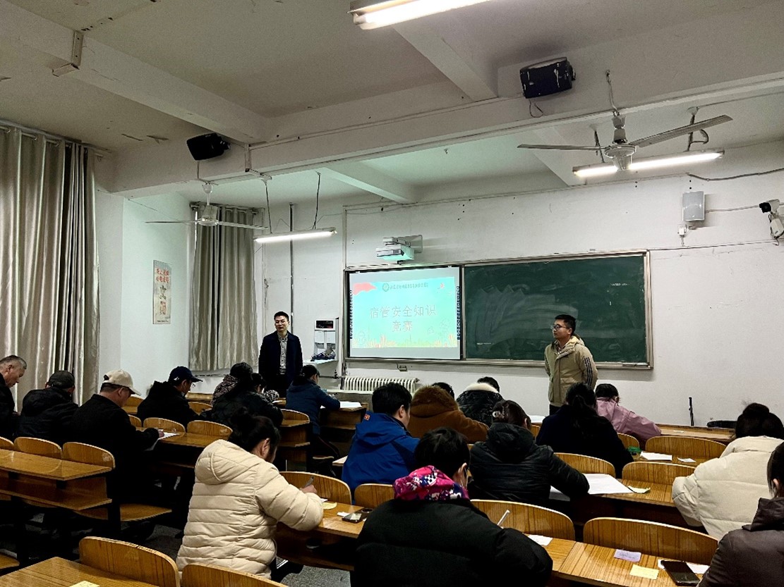 为夯实学校学生宿舍消防安全工作,提高宿舍生活指导老师安全防范意识,学生工作处于11月23日下午4:10举办2023年宿管安全知识竞赛暨生活指导老师“安全第一”消防日活动。安全保卫处胡亮处长、学生工作处程涛副处长、安全保卫处权启山老师、宿舍管理干事张原振老师及17名宿舍生活指导老师参加了本次活动。