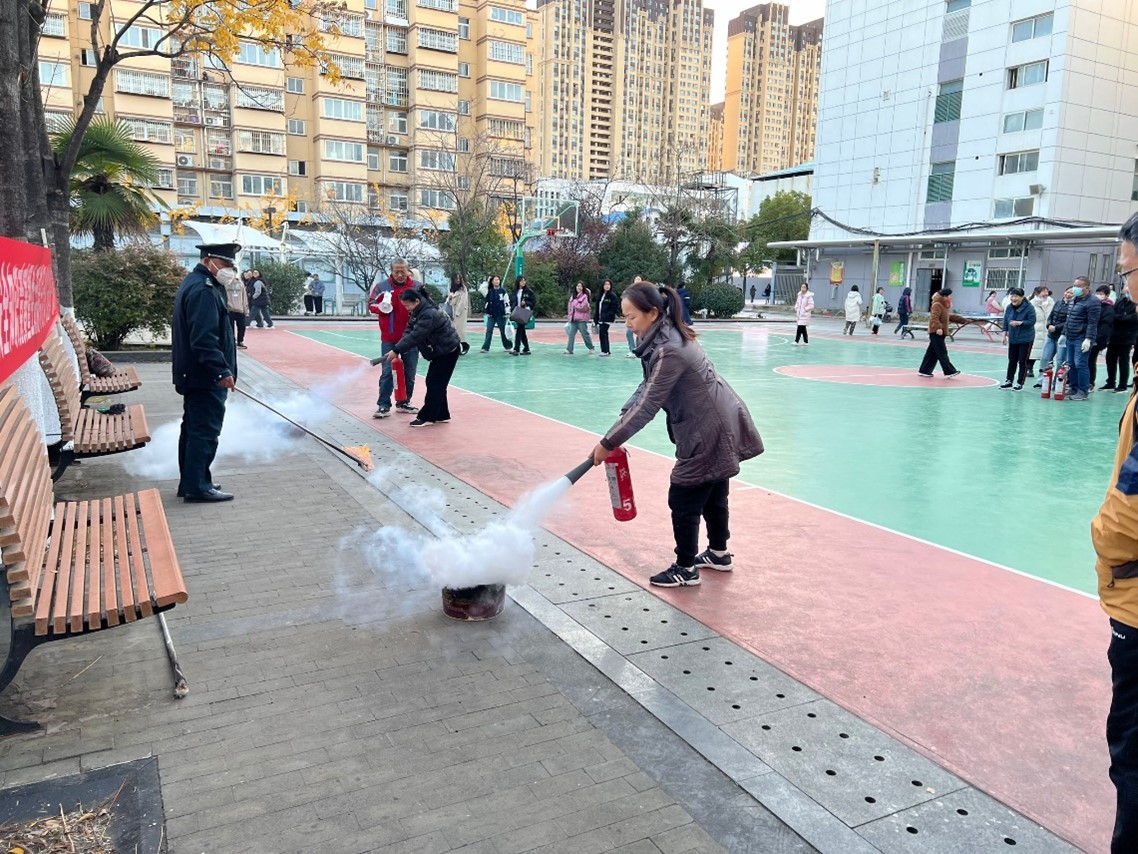 活动第一阶段,权启山老师对灭火器的种类、使用方法以及怎样有效应对火灾进行了详细的讲解与示范,并以朗朗上口的“一提二拔三握四压”的口诀让参训人员记住灭火器的使用要领。培训后,全体老师按照讲解的要点,从如何开启灭火器,把握灭火器的方向、再到最后的实战演练,一一进行了实操体验,对灭火器的使用做到了心中有数。